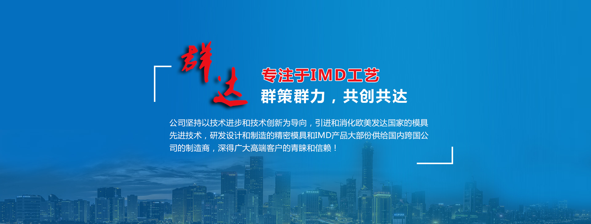 群達塑膠電子(深圳)有限公司創立于2004年8月18日是華南地區一家模內裝飾件注塑公司。注冊地址:深圳市龍崗區寶龍工業區寶龍一路9號。群達公司是新加坡股票主板市場上市公司中國群達科技控股有限公司的子公司,股票代碼為GU5。 上市公司的前身是群達集團,創立于1998年,在香港創立益群達實業有限公司、群達模具(國際)有限公司、群達貿易有限公司,在深圳除了群達塑膠電子(深圳)有限公司以外,還創建深圳市群達行精密模具有限公司、群達模具(深圳)有限公司。 群達塑膠電子(深圳)有限公司專注于精密注塑模具和IMD/IML新產品的研發和生產制造,設有深圳市先進注塑成型與模具技術研究工程中心。 公司堅持以技術進步和技術創新為導向,引進和消化歐美發達國家的模具先進技術,聯合海內外知名理工科大學,不斷…